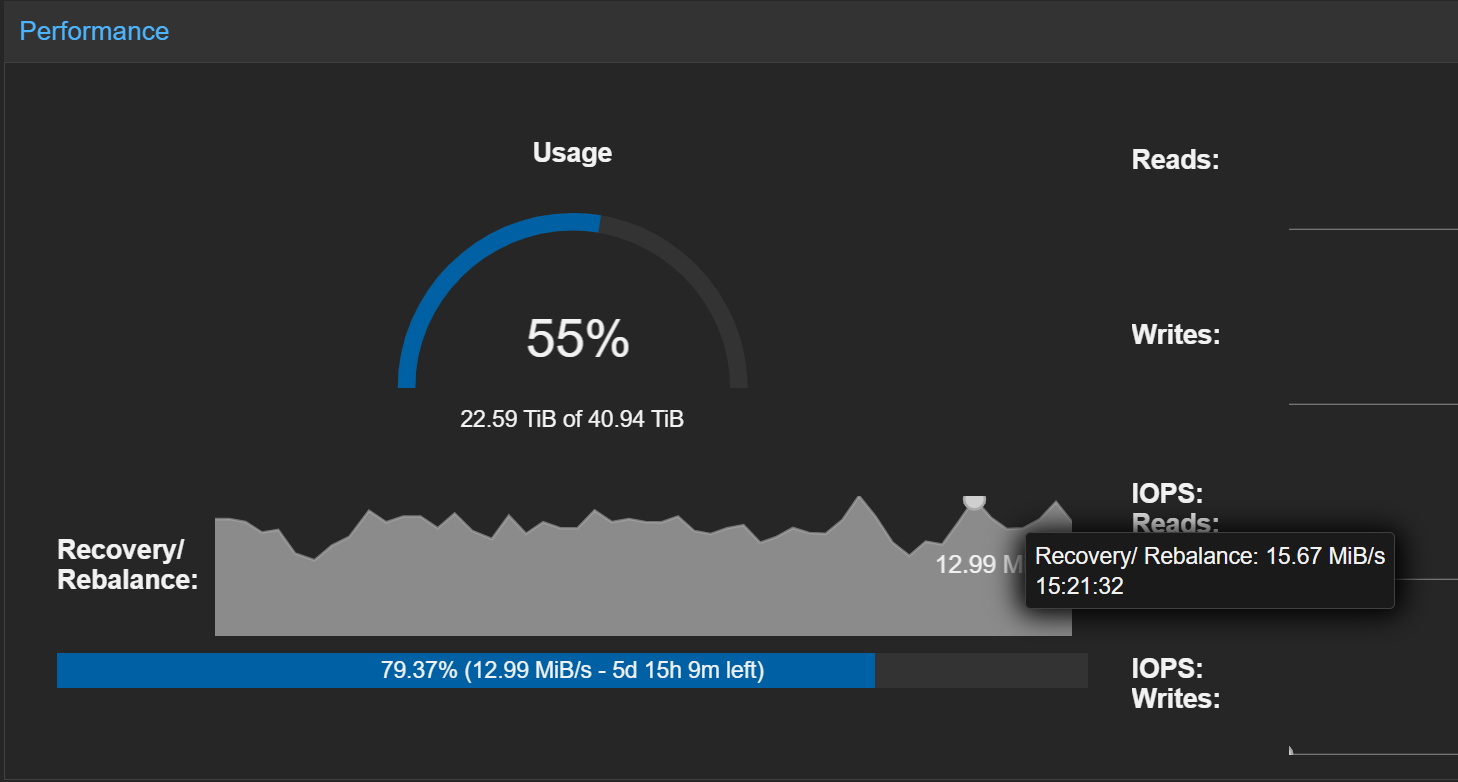 The rebalancing process was taking much longer than expected, and I suspected the inconsistent mClock settings were contributing to the performance bottleneck.